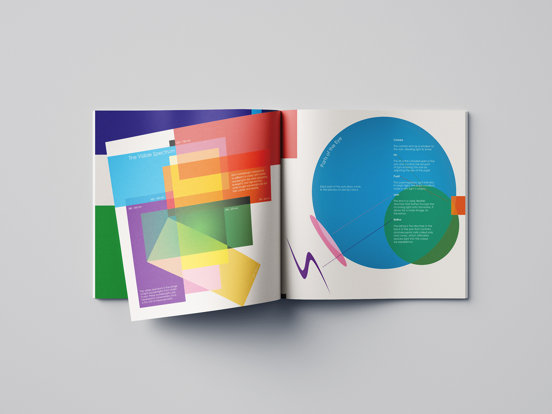 Final major project for the graphic communication design course at the University of Westminster. The project represents the experience of colour from both an objective and subjective view.